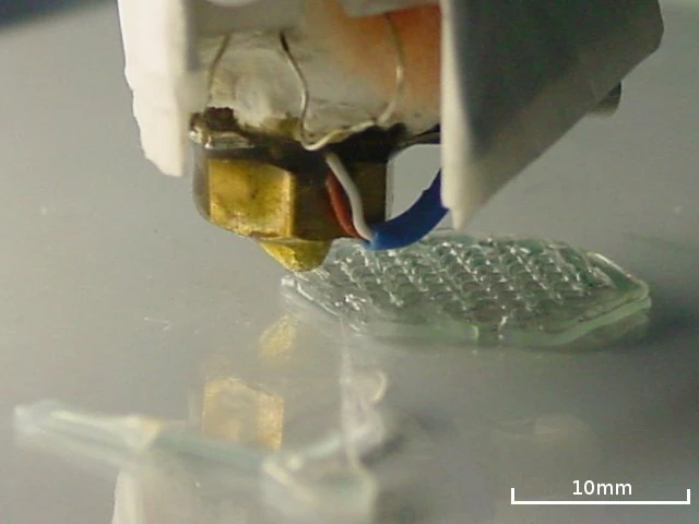 - Thermoplastic polymer — which is what is being concentrated on currently. This is generally used to create structure. Polylactic acid has been successfully implemented by at least two project researchers, and will likely become the official polymer of choice. Its positive engineering attributes include its translucent color, minimal warping on cooling and high strength. In addition, unlike most thermoplastics it is not a petroleum-derived product, and thus is theoretically capable of being produced from waste biomass and biodegrading. However, this process only occurs at a significant rate when the thermoplastic is exposed to sustained temperatures above 70°C, so this is not a barrier to its use in printed objects.